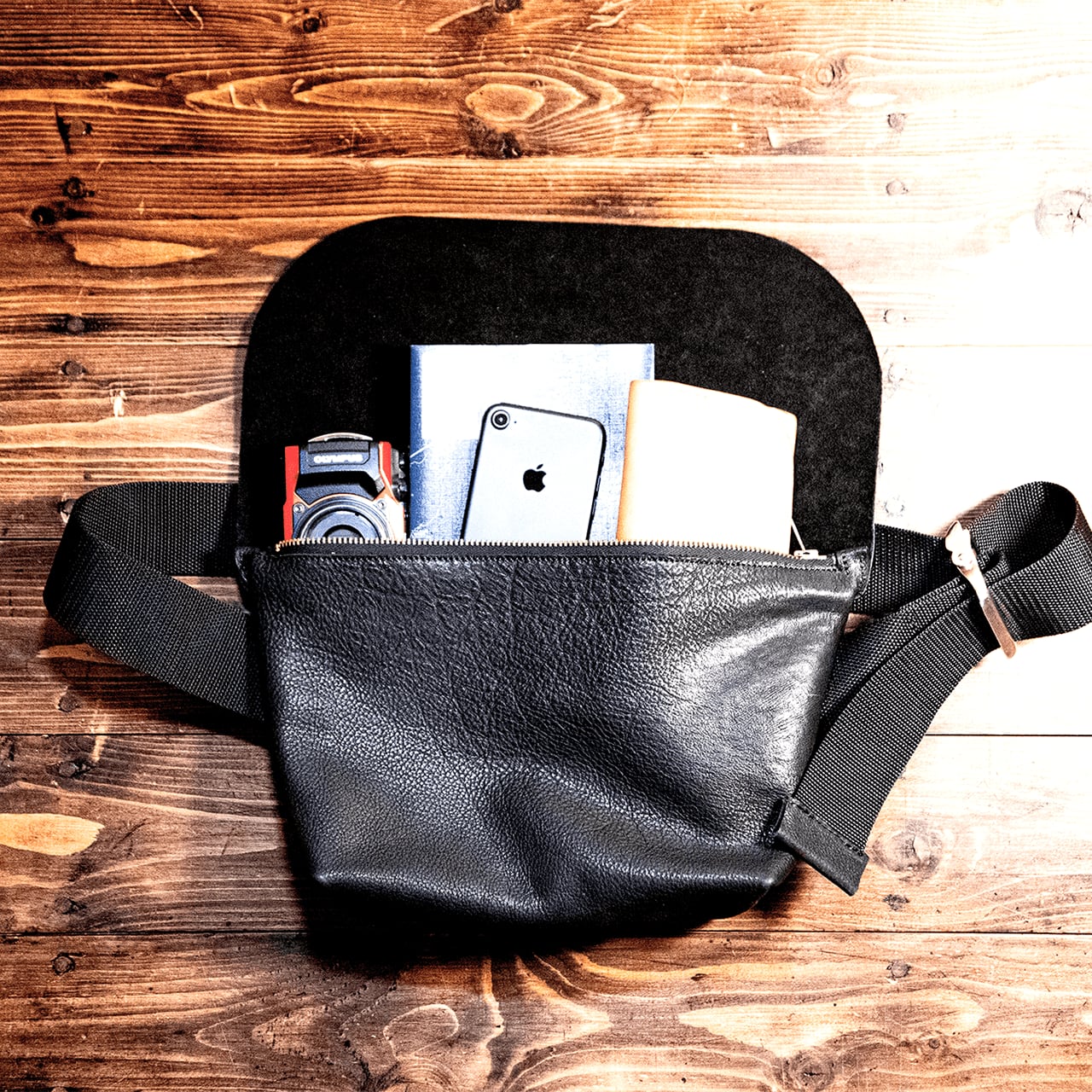 柔らかいシュリンクレザーをシンプルなボディバッグに仕立てました。