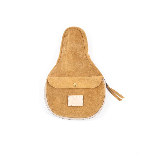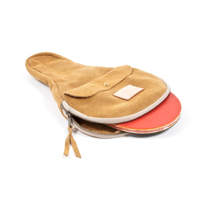 受注生産とさせていただいています。 ご注文から2週間程で発送させていただきます。 スエード革を使用した卓球ラケットケース。表面にポケット、ロゴマーク。円形部に40cmのファスナー。卓球ラケット本体よりゆとりのあるサイズで、ピンポン玉も入ります。 カラー:ベージュ サイズ:横21cm×縦31cm/革厚約1.8mm