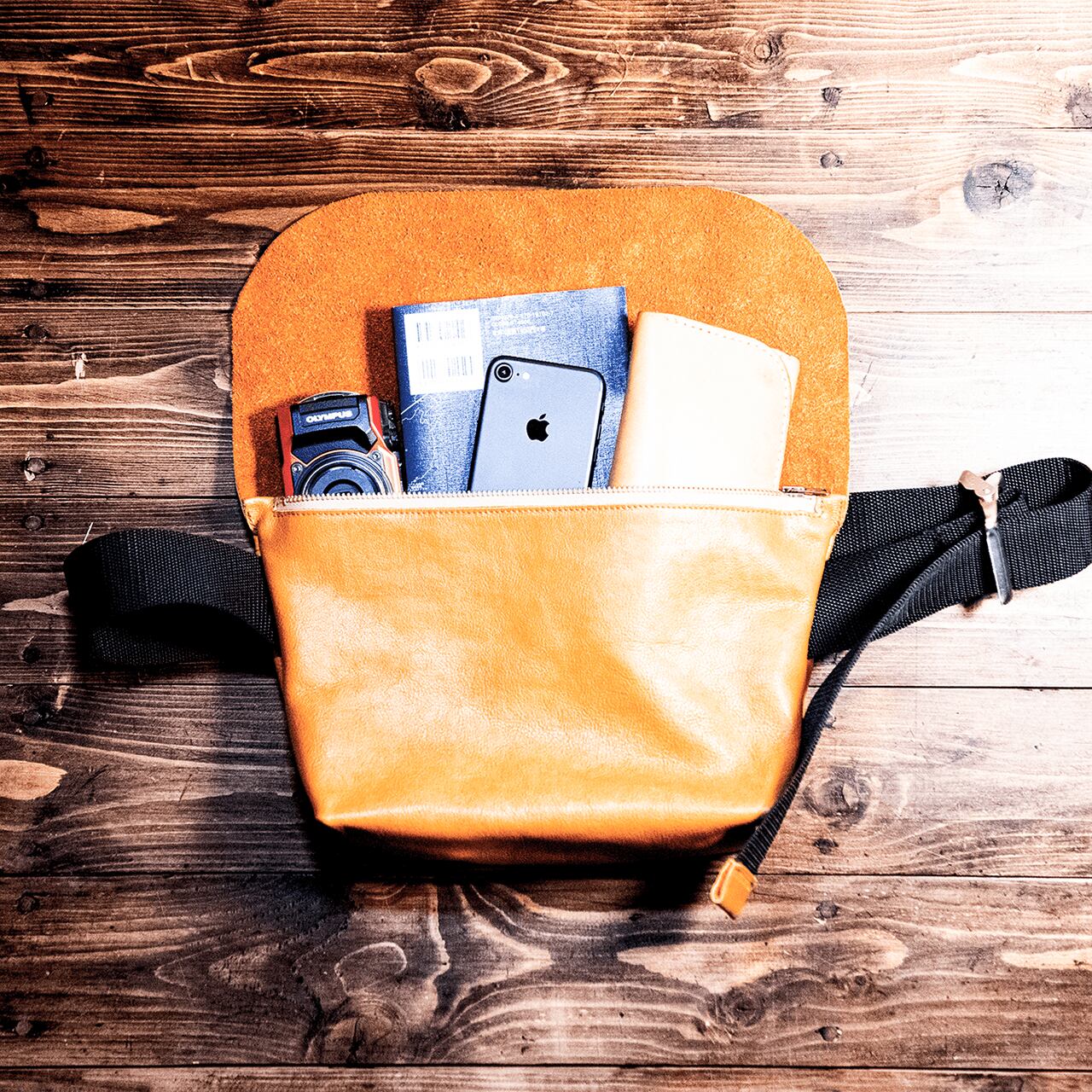 携帯・財布・コンパクトデジタルカメラ・新刊本が入る大きさでちょっとしたお出かけにピッタリのサイズ感です。