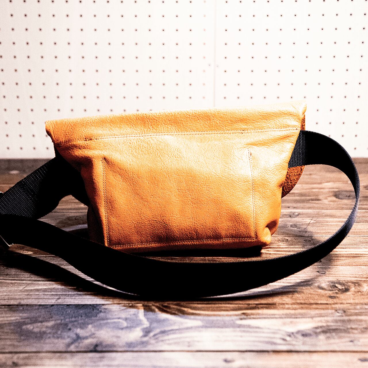 柔らかいシュリンクレザーをシンプルなボディバッグに仕立てました。